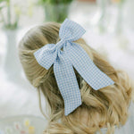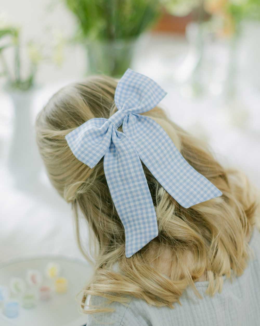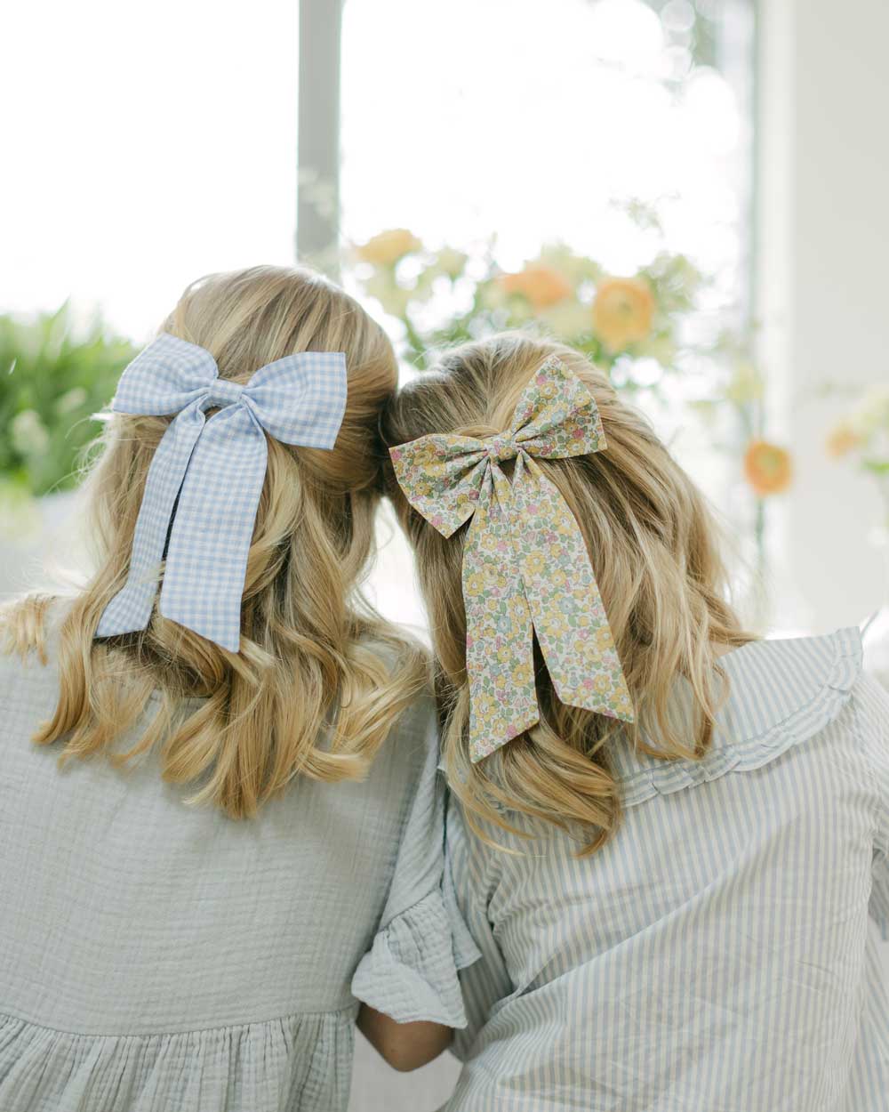 How to wear If you have thinner hair Clementine & Mint hair bows can be fixed with the crocodile closure to hold a half up hair style simply. If your hair is on the thicker side you can simply fix the hair bow over a pre pinned hair style, Model wears hair bow over a pre pinned half up hair style. See our Instagram and Tik Tok for more hair styling inspiration.