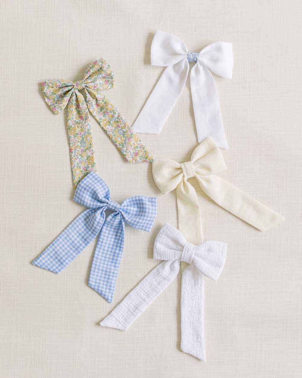 Please wash Clementine & Mint hairbows by spot cleaning with lukewarm water using gentle rubbing motions. Do not machine wash or tumble dry. Our Linen hair bows can be ironed on a low setting to remove creases.