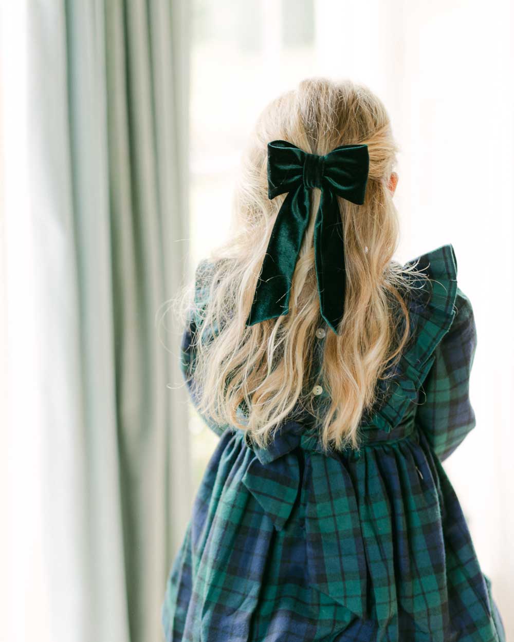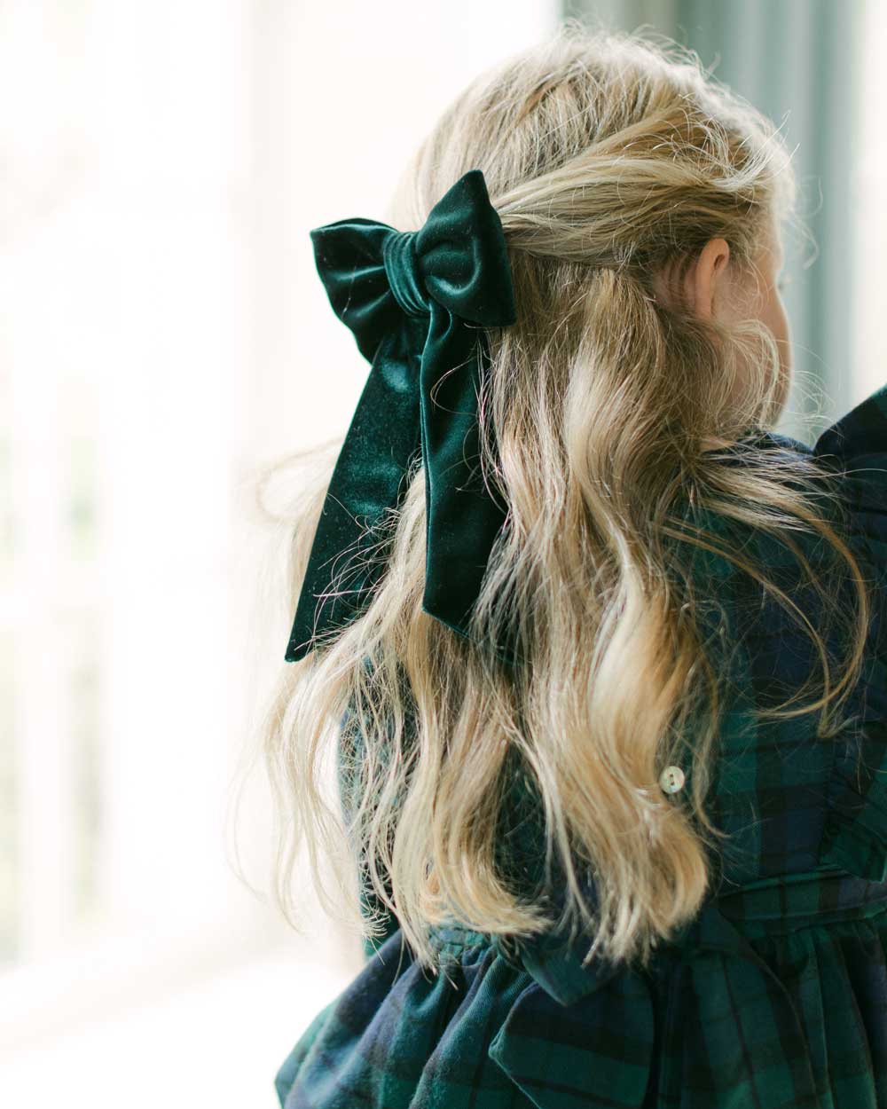 THE FOREST GREEN VELVET CHILDREN'S BOW