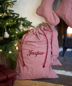 Handmade in the UK in brushed cotton tartan, our petite stocking blends timeless elegance with a luxurious finish. Designed to be hung on the Christmas tree or styled as part of your seasonal decor.