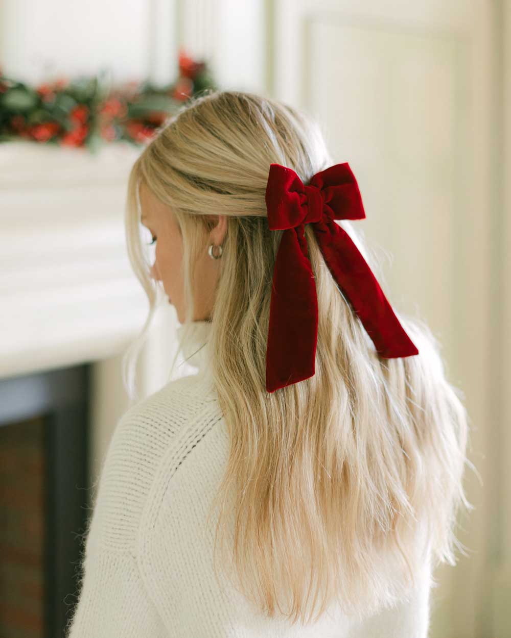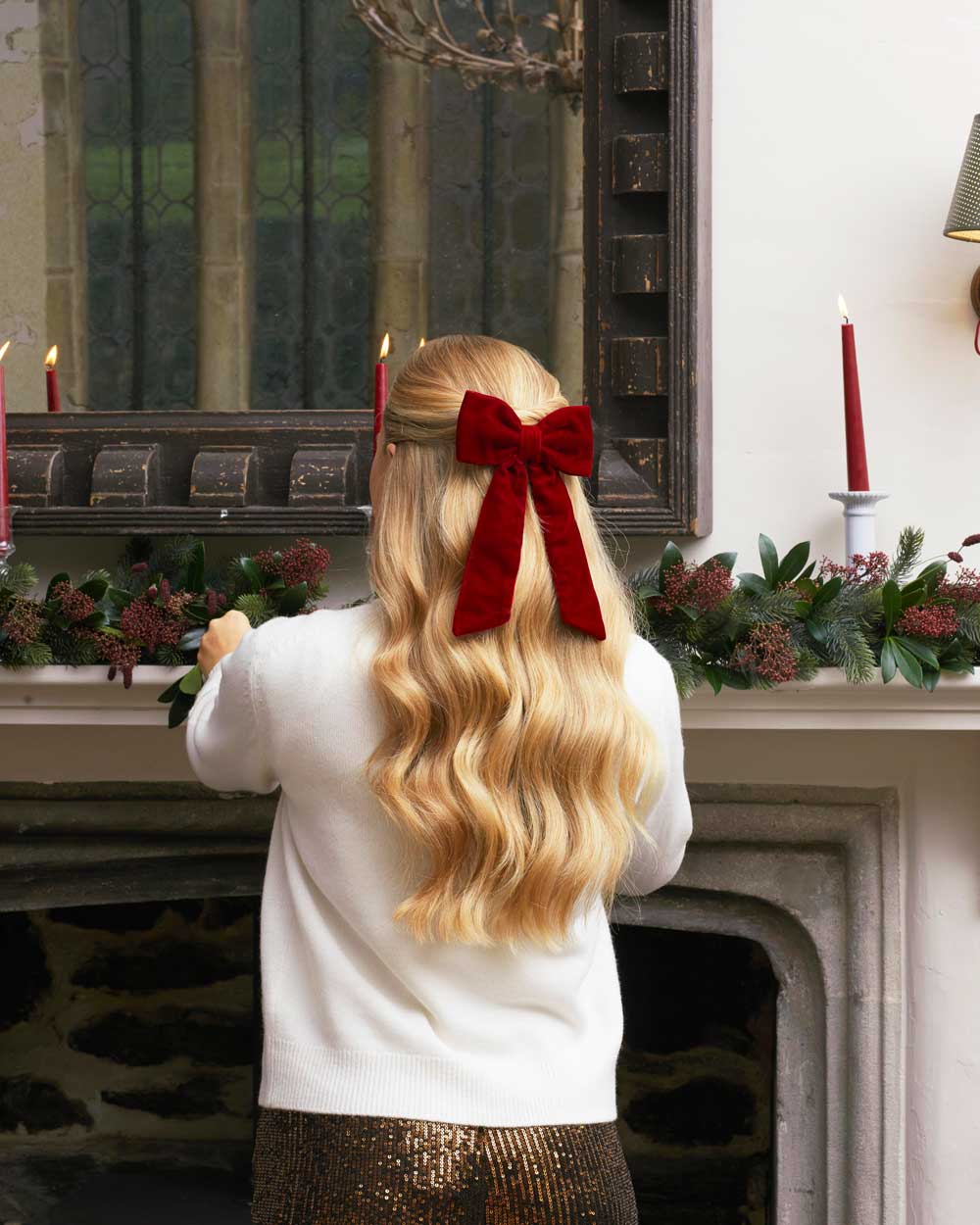 How to wear If you have thinner hair Clementine & Mint hair bows can be fixed with the crocodile closure to hold a half up hair style simply. If your hair is on the thicker side you can simply fix the hair bow over a pre pinned hair style, Model wears hair bow over a pre pinned half up hair style. See our Instagram and Tik Tok for more hair styling inspiration.