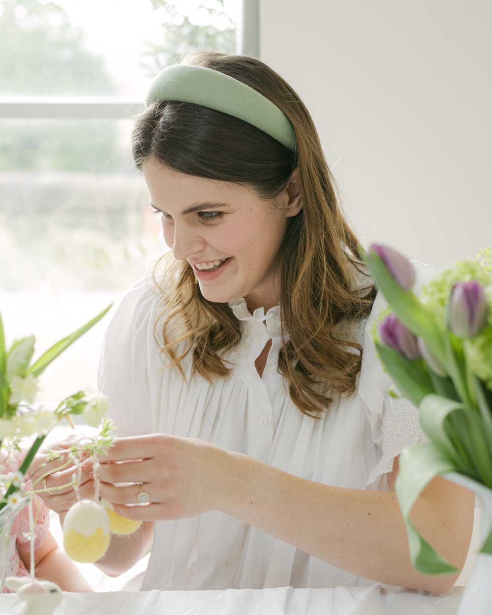 Clementine & Mint headbands are handmade in our studio in Wiltshire. Our headbands add a hint of understated luxury and offer a timeless addition to your hair collection. Our headbands are lined with a cotton braid, with optimum comfort in mind; offering a flexible fit whilst guaranteeing comfort for all day and night wear. Each headband comes in a linen drawstring bag.