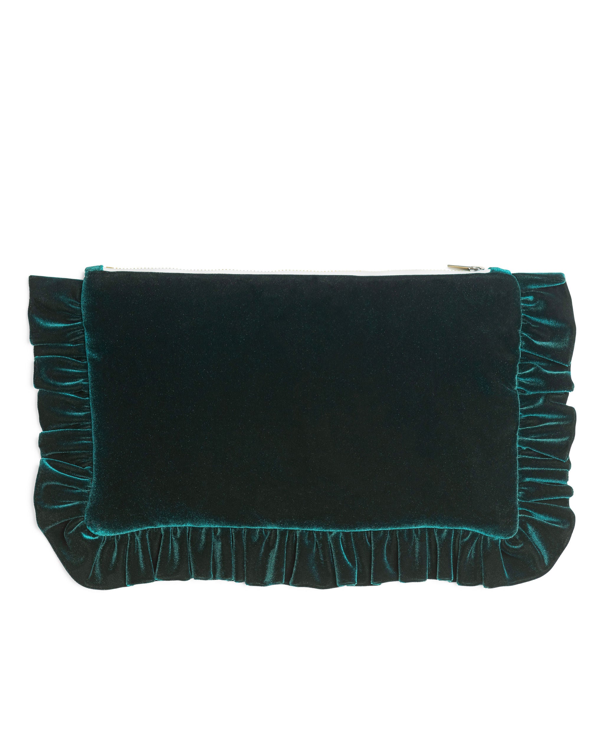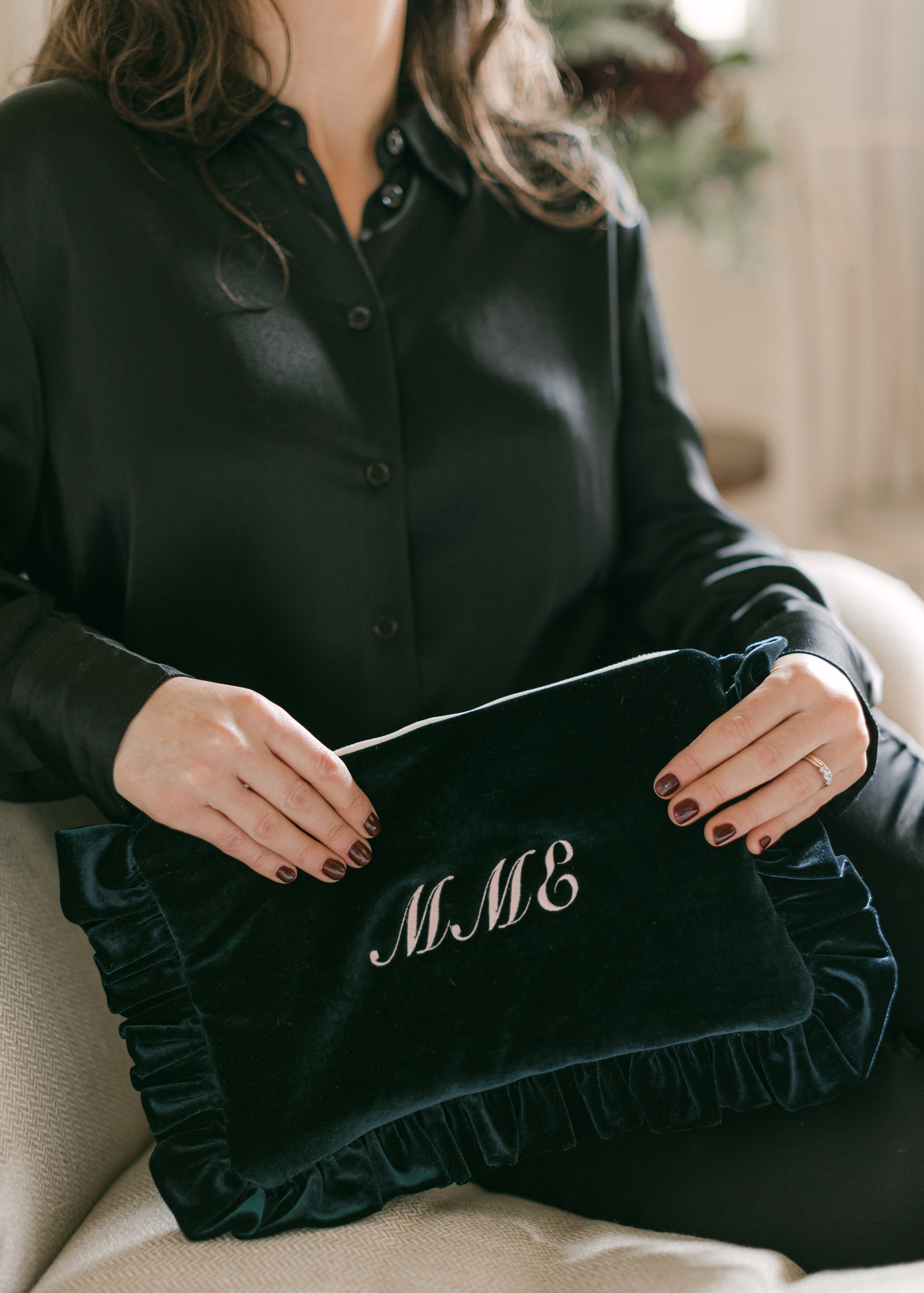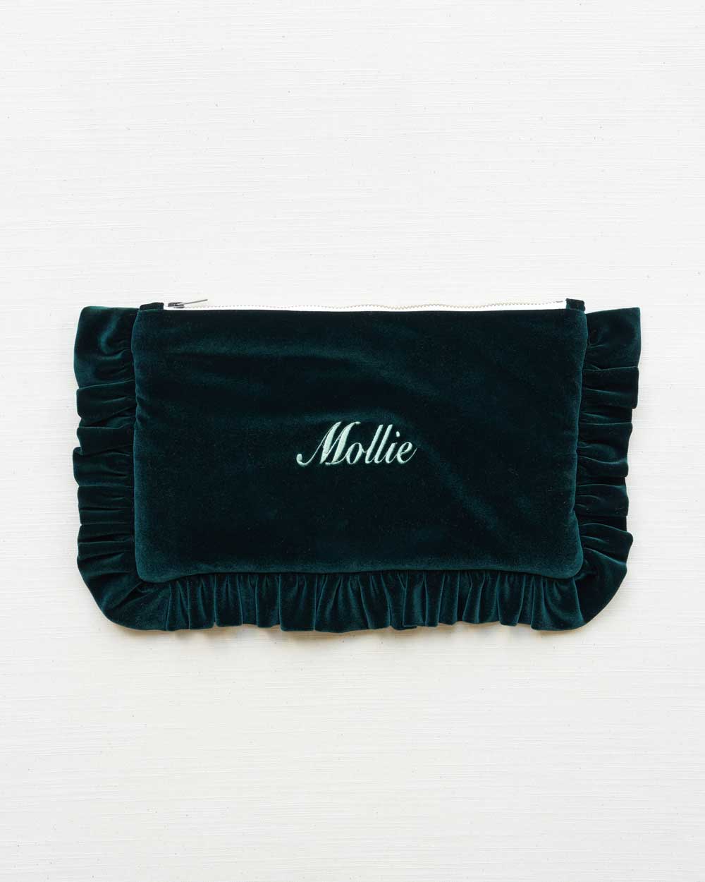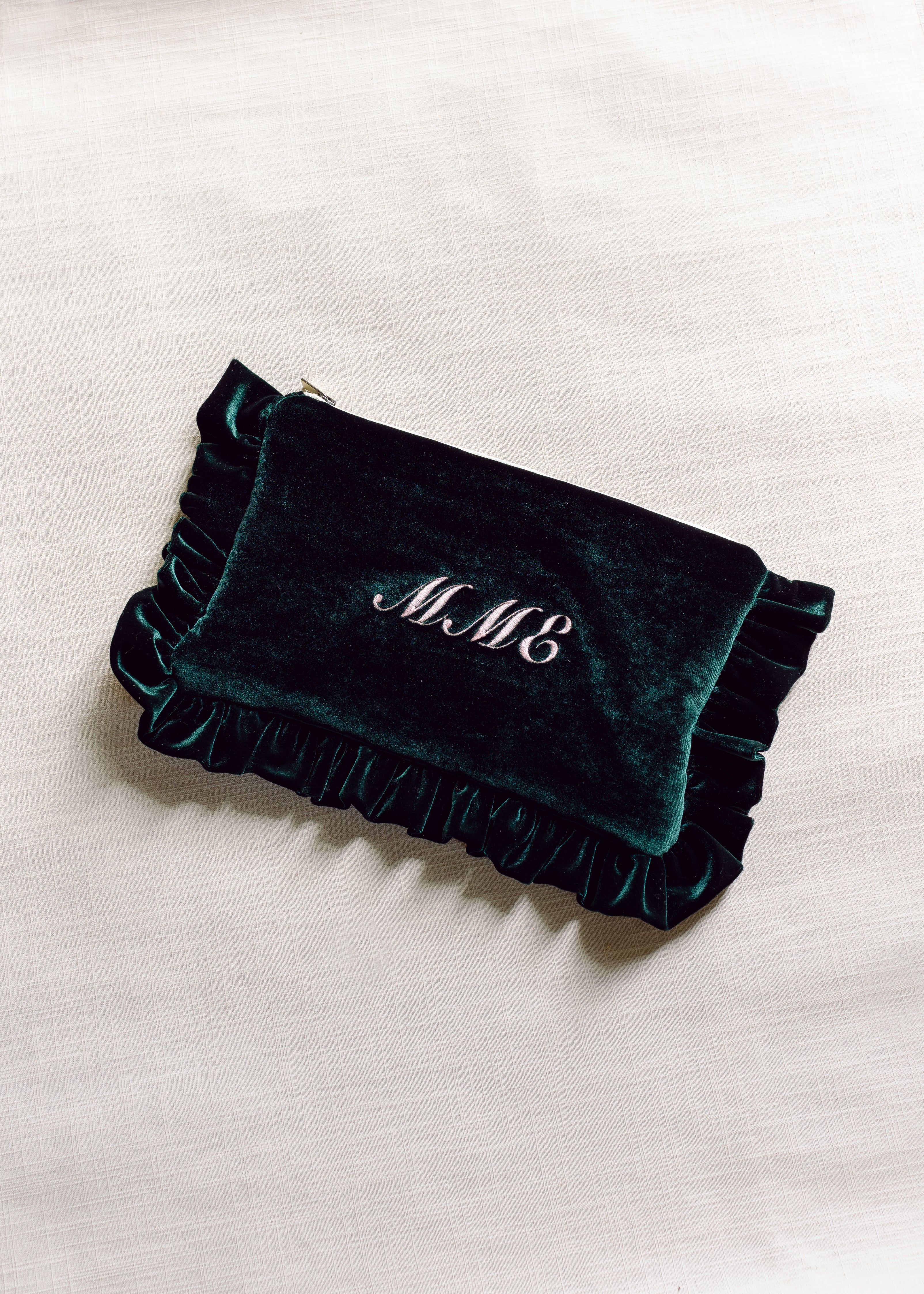 Our Ruffled Pouch will become your go to everyday organisation saviour. Perfect for storing your everyday handbag essentials, toiletries, travel essentials and even used as a clutch. Handmade in our studio in Wiltshire with an aged brass zip closure.