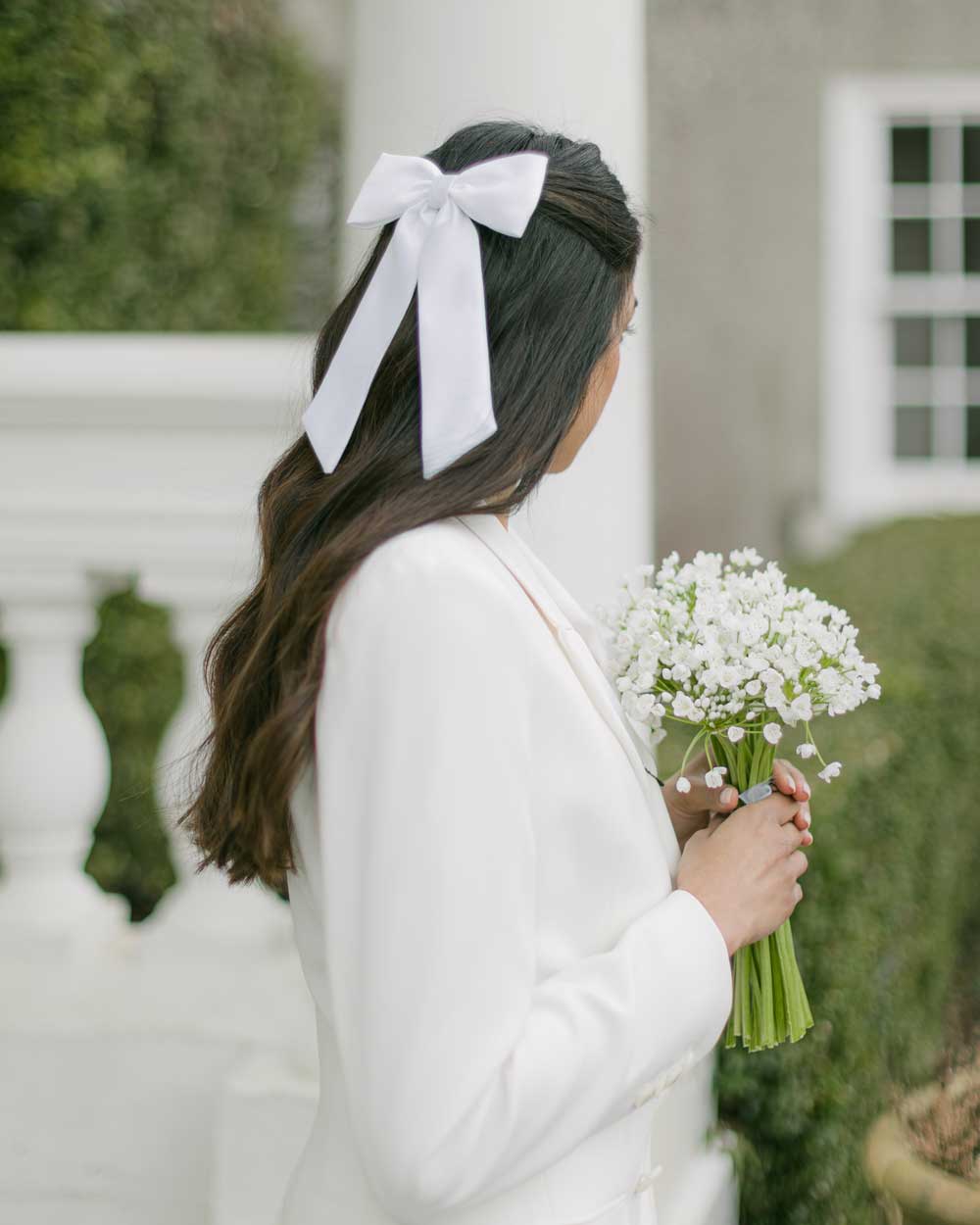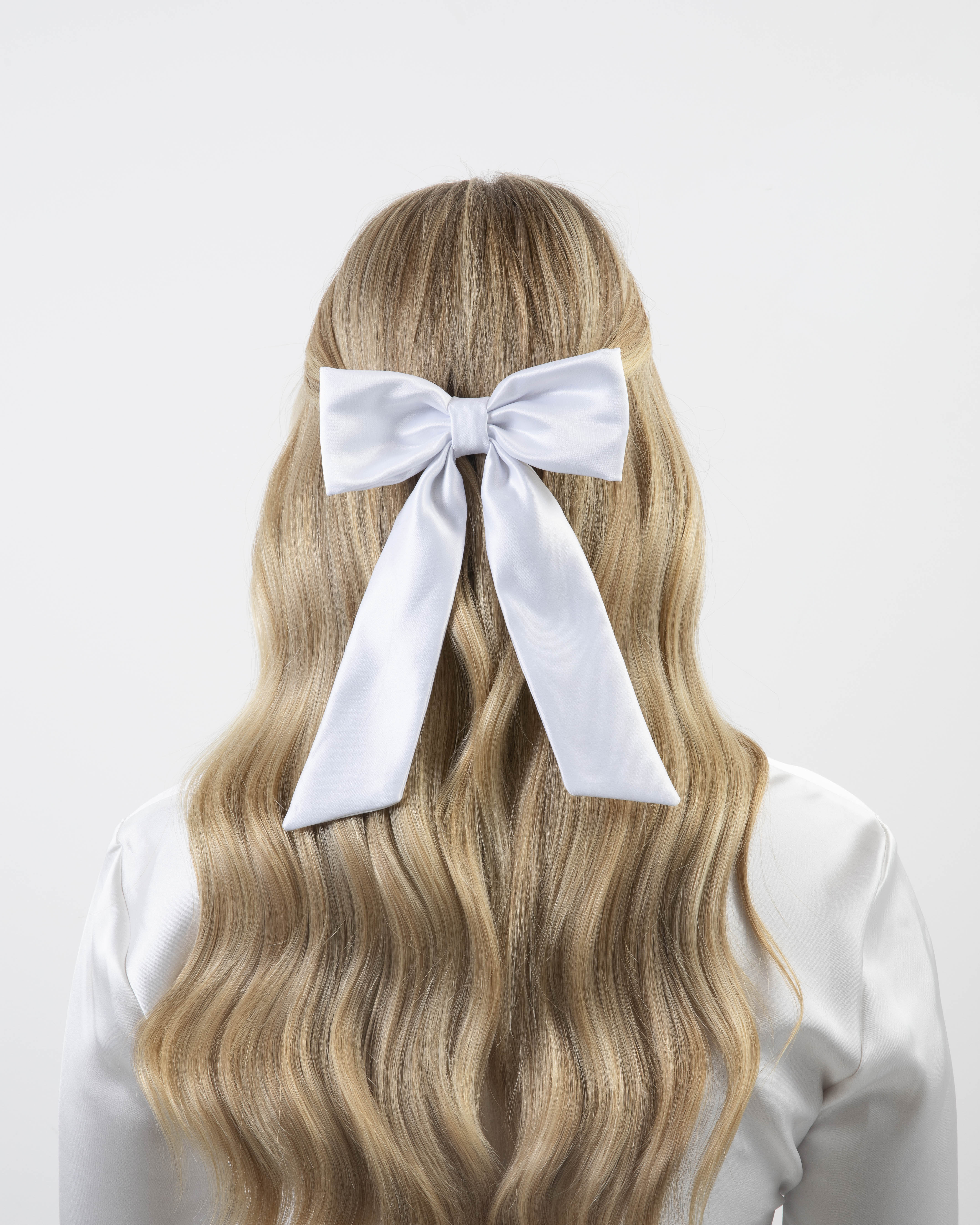 How to wear If you have thinner hair Clementine & Mint hair bows can be fixed with the crocodile closure to hold a half up hair style simply. If your hair is on the thicker side you can simply fix the hair bow over a pre pinned hair style, Model wears hair bow over a pre pinned half up hair style. See our Instagram and Tik Tok for more hair styling inspiration.