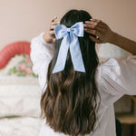 How to wear If you have thinner hair Clementine & Mint hair bows can be fixed with the crocodile closure to hold a half up hair style simply. If your hair is on the thicker side you can simply fix the hair bow over a pre pinned hair style, Model wears hair bow over a pre pinned half up hair style. See our Instagram and Tik Tok for more hair styling inspiration.