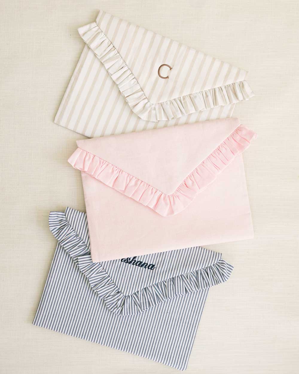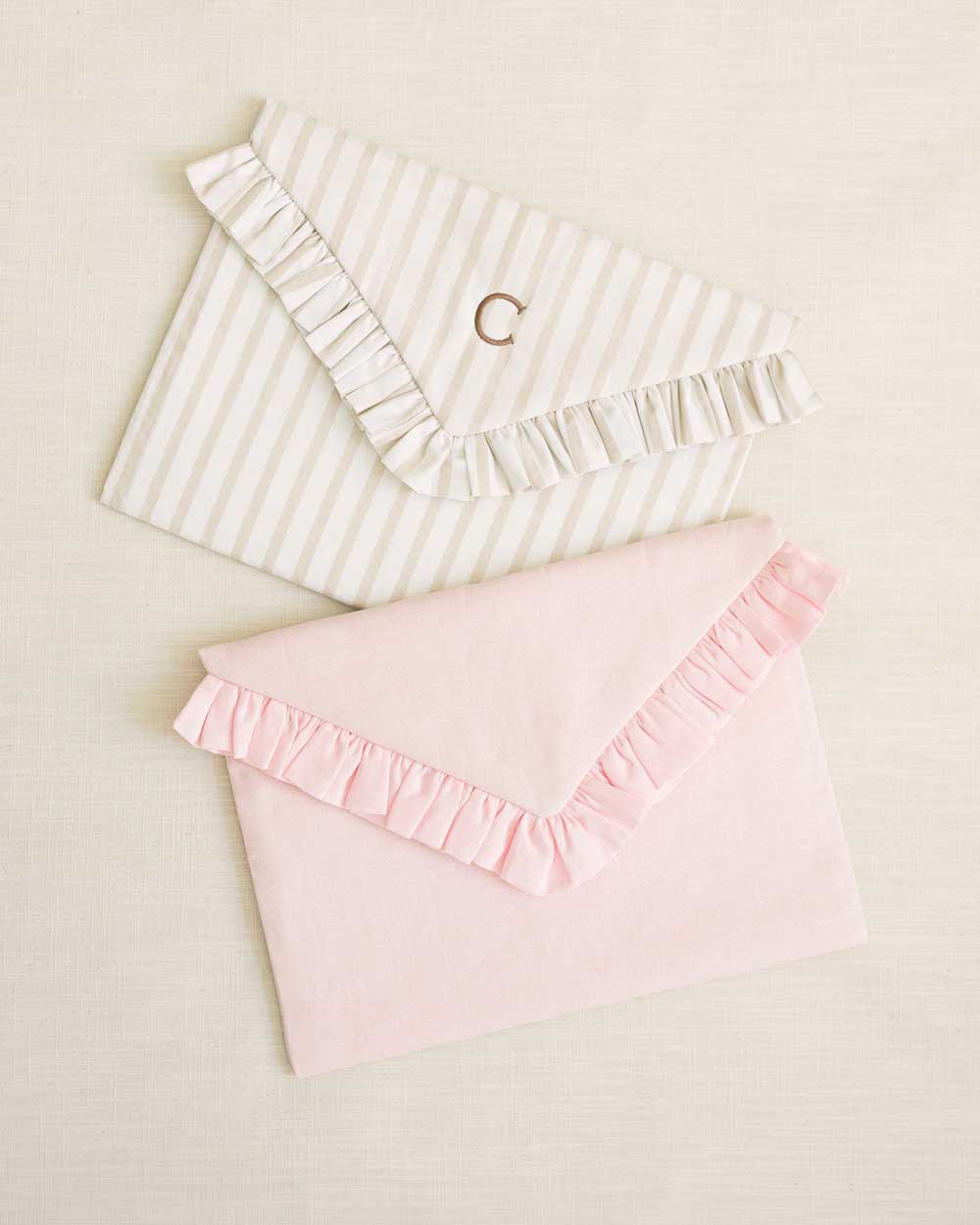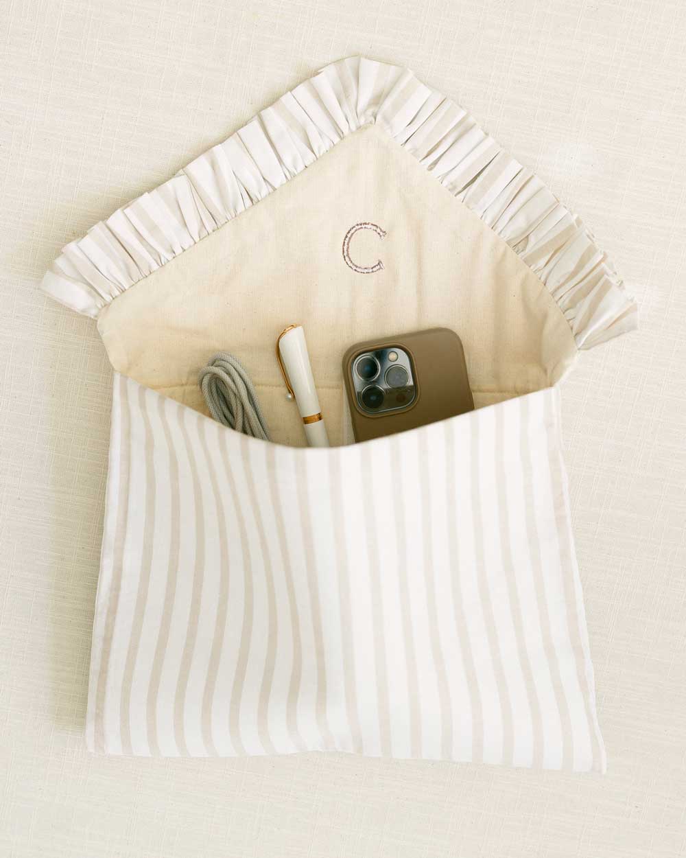 The Clementine & Mint laptop sleeve will elevate your laptop storage as a safe and stylish solution. Featuring our signature ruffle detail, a tab closure and a large internal pocket which is the perfect size to store a few of your everyday essentials. Our laptop sleeve will add a touch of luxury to your everyday. Handmade in our stuido in Wiltshire with an internal pocket and soft velcro tab closure to keep your laptop secure.