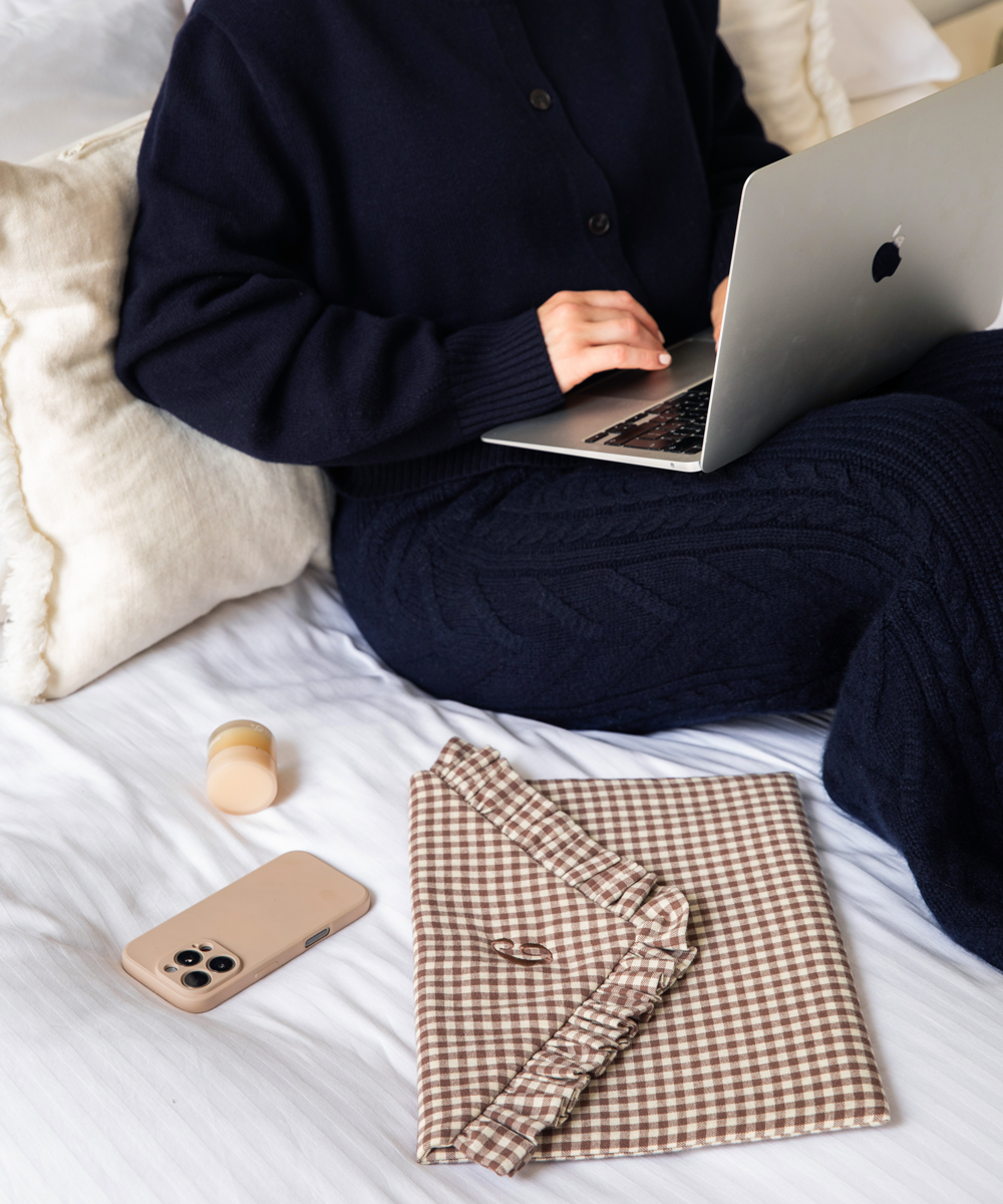 The Clementine & Mint laptop sleeve will elevate your laptop storage as a safe and stylish solution. Featuring our signature ruffle detail, a tab closure and a large internal pocket which is the perfect size to store a few of your everyday essentials. Our laptop sleeve will add a touch of luxury to your everyday. Handmade in our stuido in Wiltshire with an internal pocket and soft velcro tab closure to keep your laptop secure.