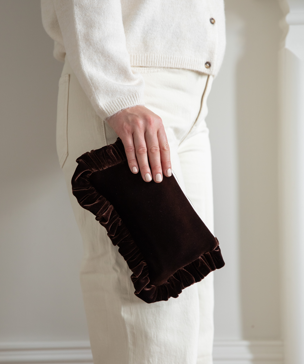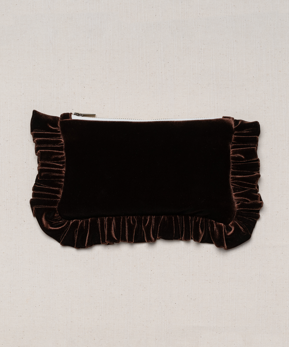 Our much loved ruffled pouch now comes in a mini size. The perfect size for on the go, the C&M mini pouch will fit your phone, lipstick and keys perfectly so you can grab and go with a beautifully practical pouch. Handmade in our studio in Wiltshire with an aged brass zip closure.