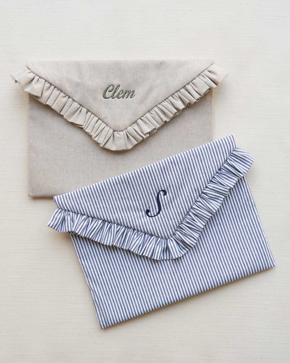 The Clementine & Mint laptop sleeve will elevate your laptop storage as a safe and stylish solution. Featuring our signature ruffle detail, a tab closure and a large internal pocket which is the perfect size to store a few of your everyday essentials. Our laptop sleeve will add a touch of luxury to your everyday. Handmade in our stuido in Wiltshire with an internal pocket and soft velcro tab closure to keep your laptop secure.