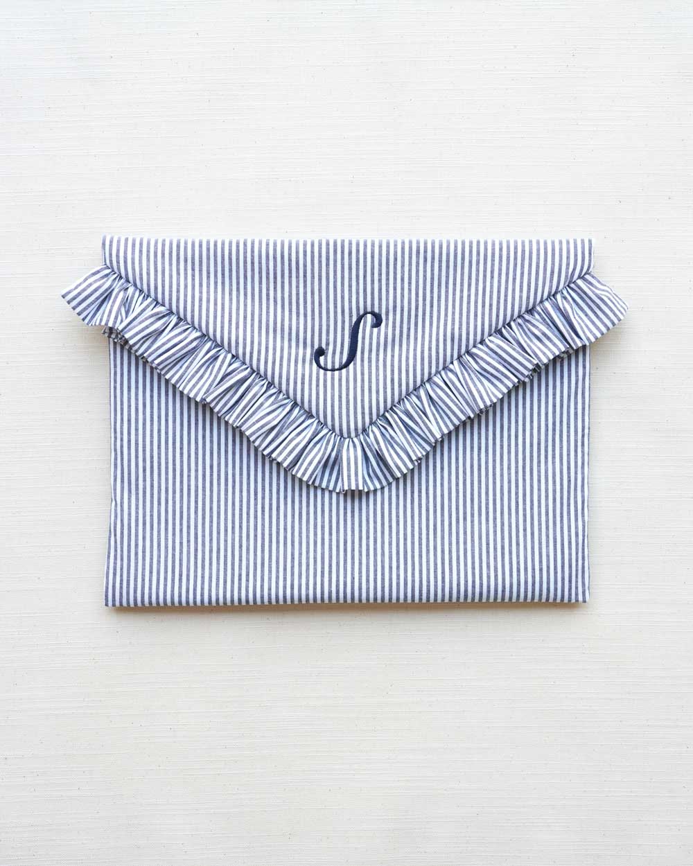 The Navy Stripe Ruffled Laptop Sleeve