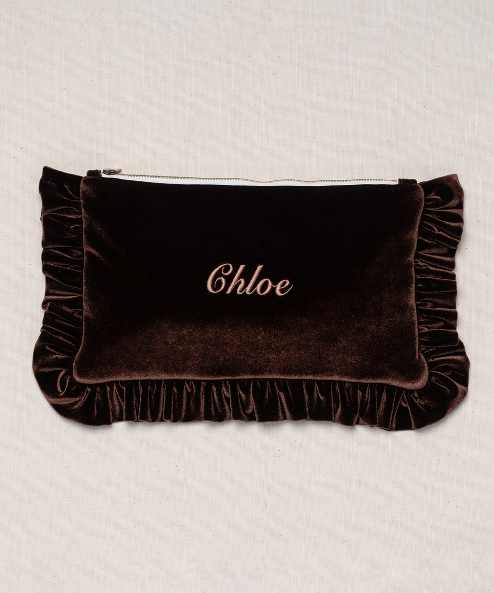 The Brown Velvet Ruffled Pouch