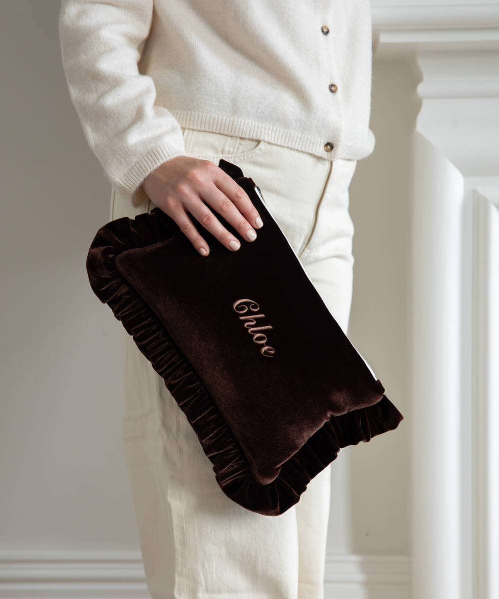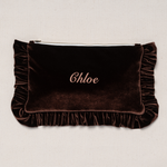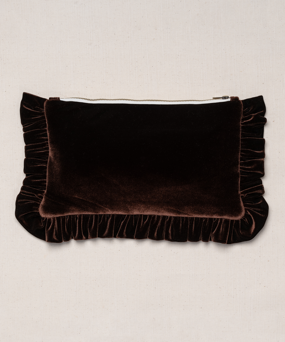 Our Ruffled Pouch will become your go to everyday organisation saviour. Perfect for storing your everyday handbag essentials, toiletries, travel essentials and even used as a clutch. Handmade in our studio in Wiltshire with an aged brass zip closure.