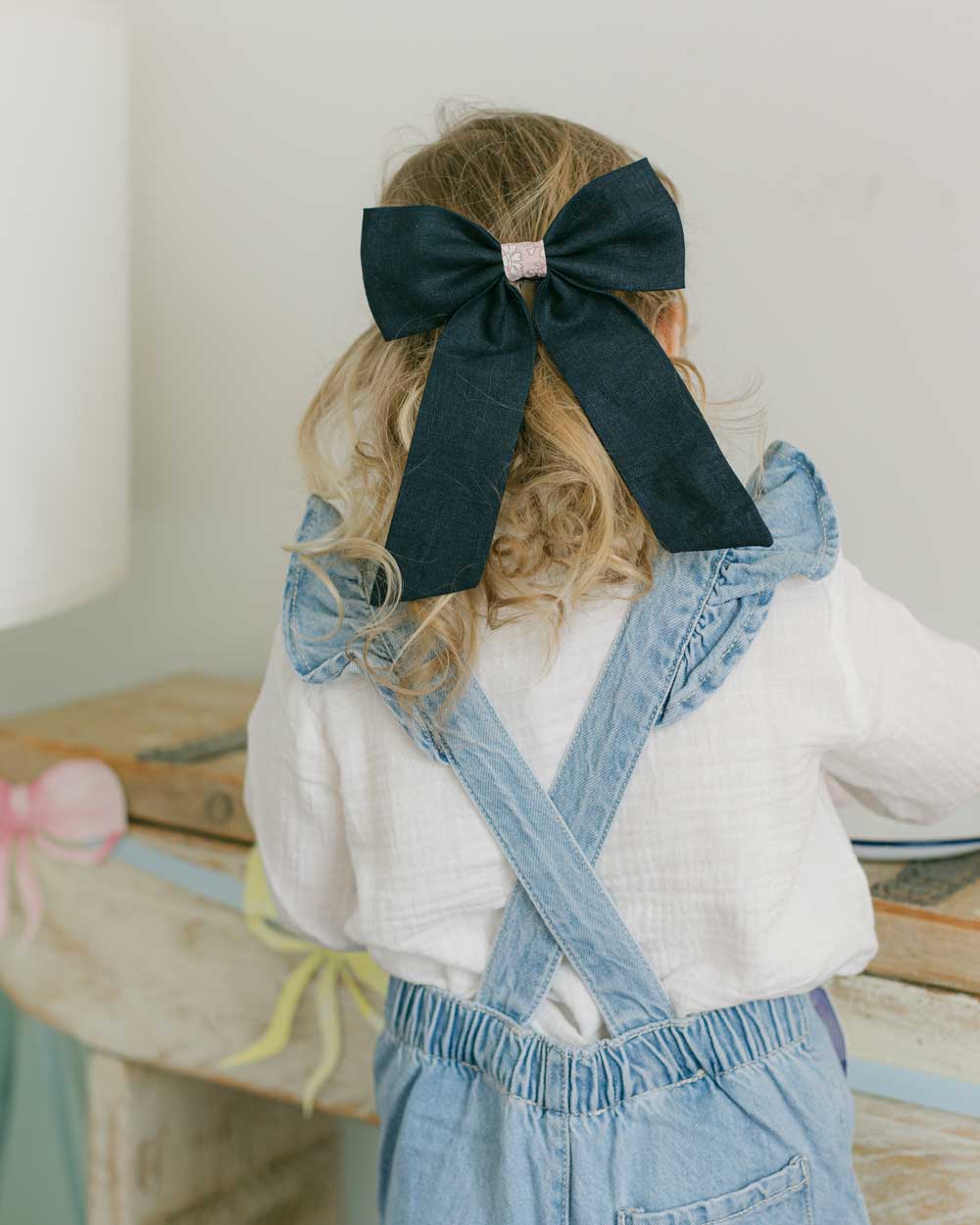 The Clementine & Mint Children's Hair Bows will add the ultimate finishing touch to your little ones' outfits. You can now pair your little ones' accessories to match yours perfectly. Handmade in our studio in Wiltshire, each hairbow comes in a linen drawstring bag with a crocodile clip attachement.