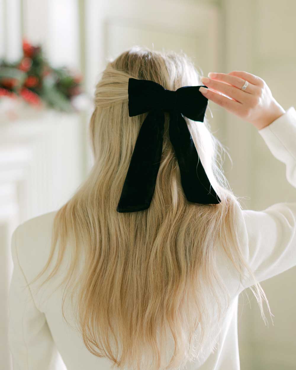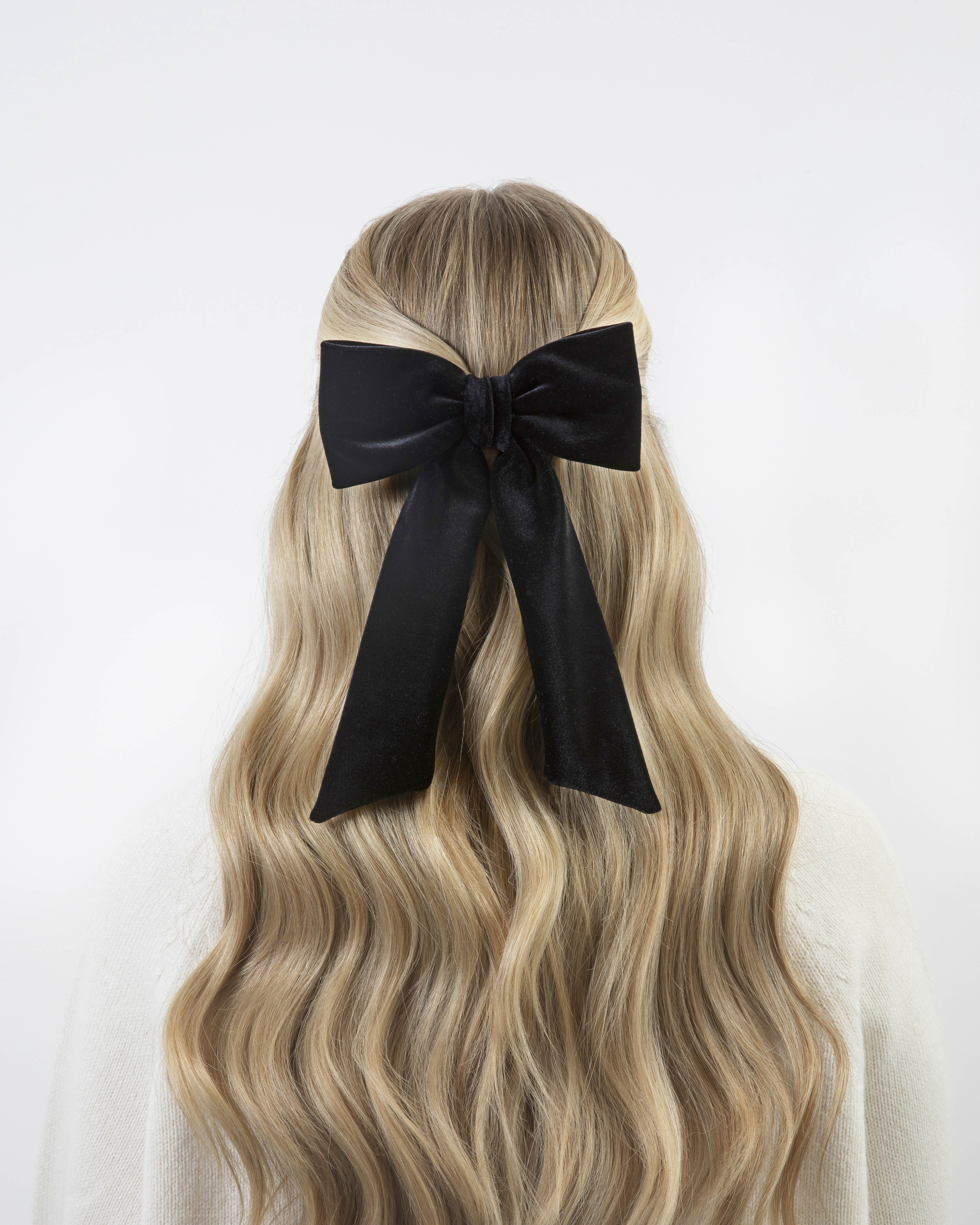 How to wear If you have thinner hair Clementine & Mint hair bows can be fixed with the crocodile closure to hold a half up hair style simply. If your hair is on the thicker side you can simply fix the hair bow over a pre pinned hair style, Model wears hair bow over a pre pinned half up hair style. See our Instagram and Tik Tok for more hair styling inspiration.