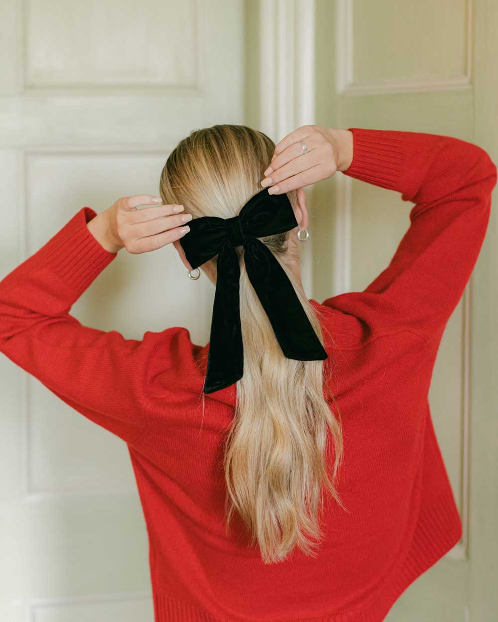 How to wear If you have thinner hair Clementine & Mint hair bows can be fixed with the crocodile closure to hold a half up hair style simply. If your hair is on the thicker side you can simply fix the hair bow over a pre pinned hair style, Model wears hair bow over a pre pinned half up hair style. See our Instagram and Tik Tok for more hair styling inspiration.