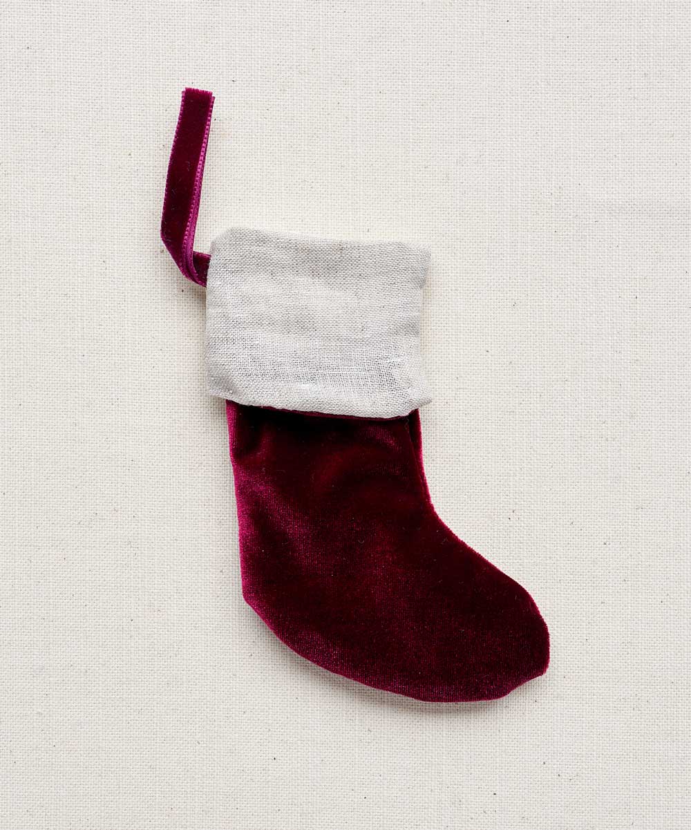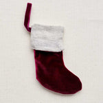 Handmade in the UK in burgundy velvet, our petite stocking blends timeless elegance with a luxurious finish. Designed to be hung on the Christmas tree or styled as part of your seasonal decor.