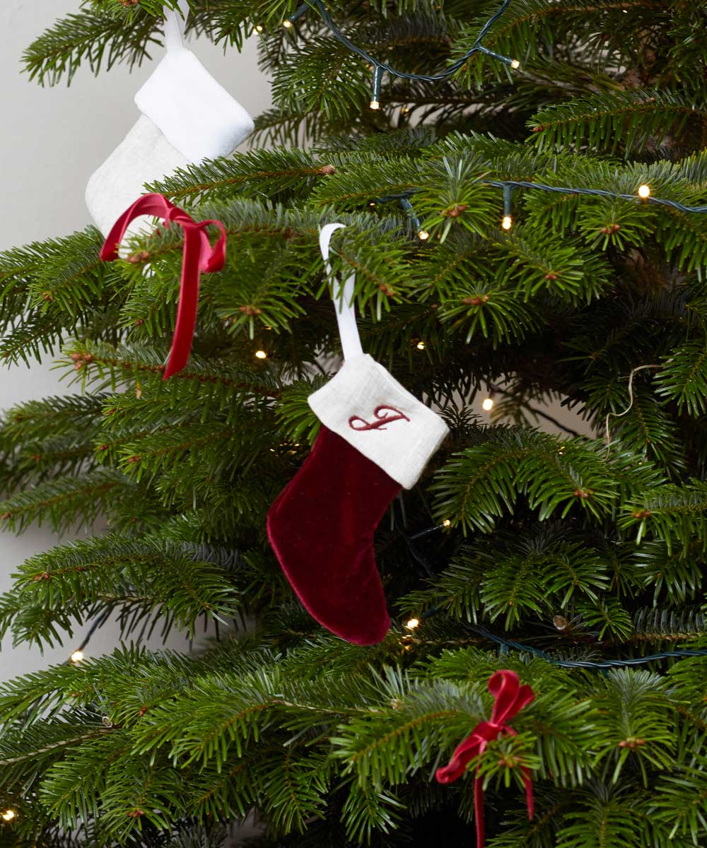 Each decoration can be personalised in the thread and font colour of your choice. Whether filled with a little treat, used as a place setting, or gifted on its own, this mini stocking is a festive detail to cherish. Please note when personalised mini stockings do not open and are sealed.