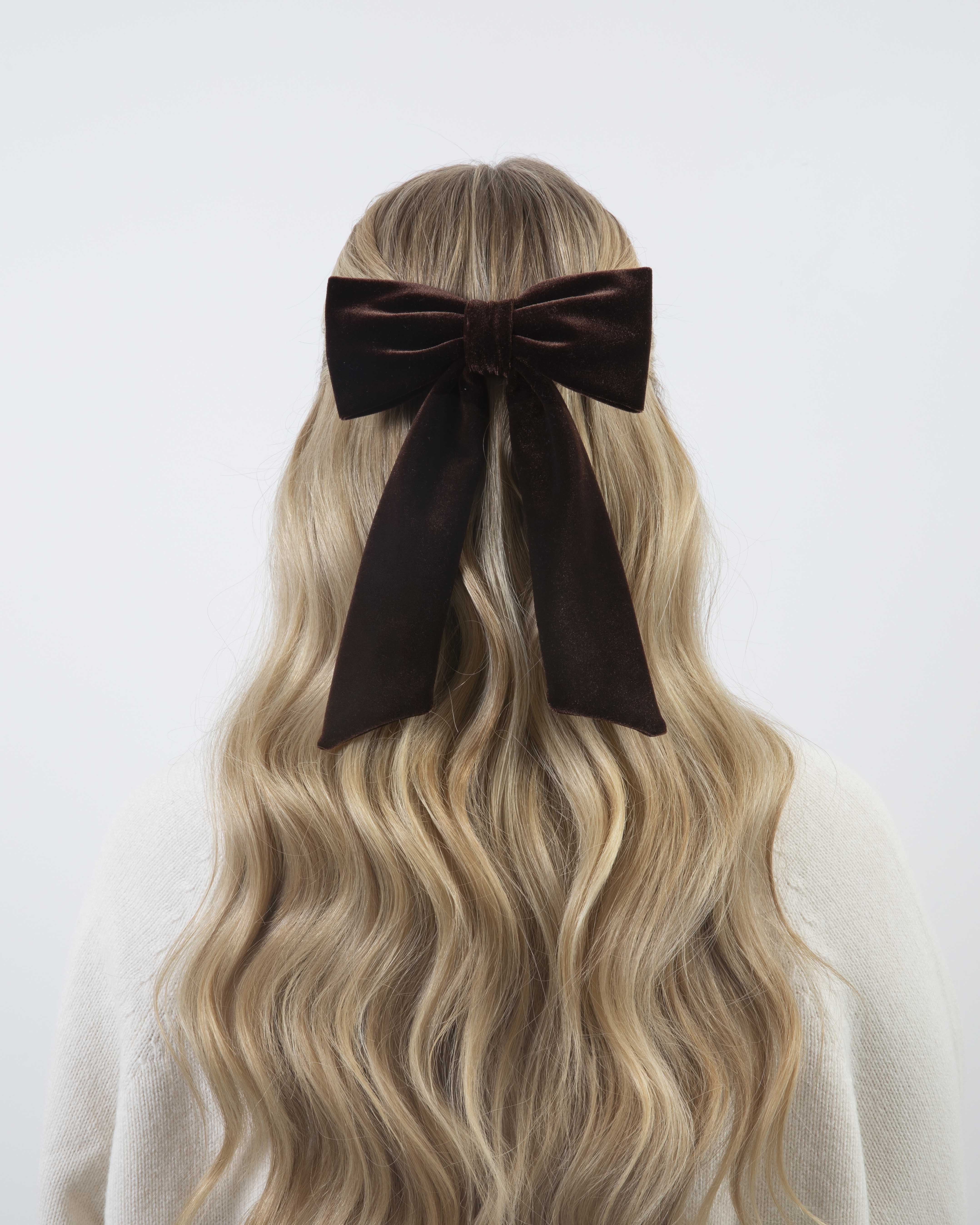 How to wear If you have thinner hair Clementine & Mint hair bows can be fixed with the crocodile closure to hold a half up hair style simply. If your hair is on the thicker side you can simply fix the hair bow over a pre pinned hair style, Model wears hair bow over a pre pinned half up hair style. See our Instagram and Tik Tok for more hair styling inspiration.