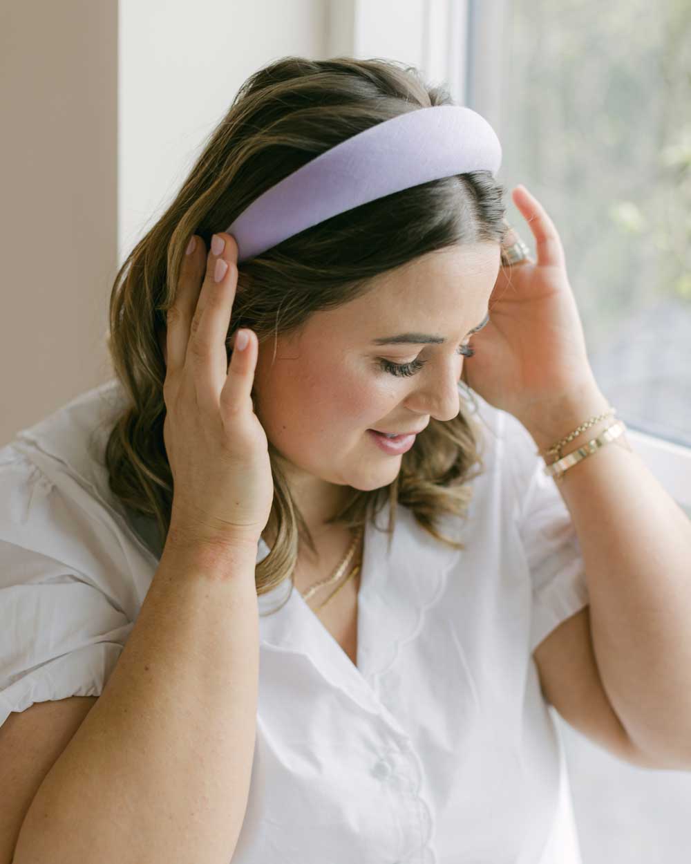 Clementine & Mint headbands are handmade in our studio in Wiltshire. Our headbands add a hint of understated luxury and offer a timeless addition to your hair collection. Our headbands are lined with a cotton braid, with optimum comfort in mind; offering a flexible fit whilst guaranteeing comfort for all day and night wear. Each headband comes in a linen drawstring bag.