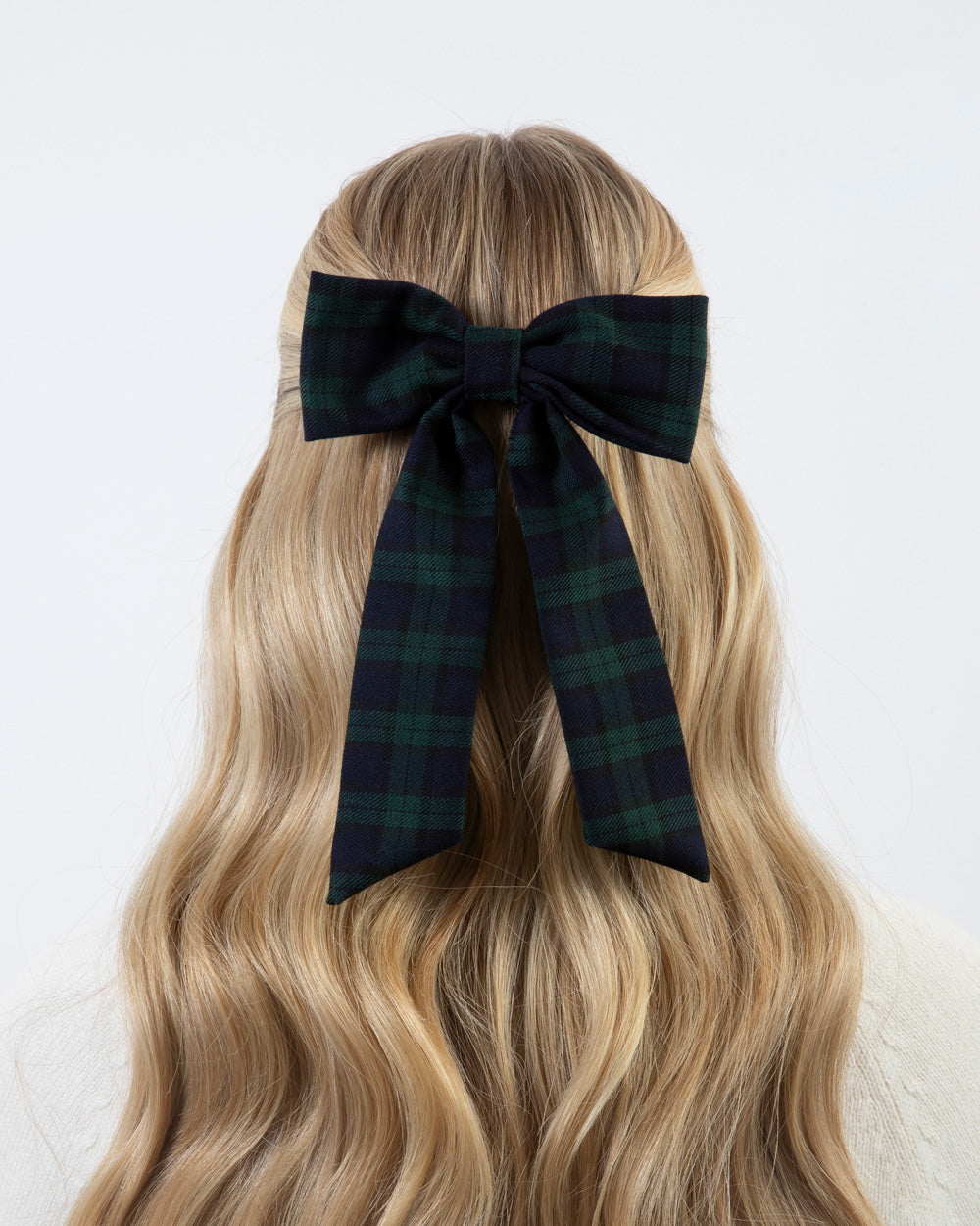 How to wear If you have thinner hair Clementine & Mint hair bows can be fixed with the crocodile closure to hold a half up hair style simply. If your hair is on the thicker side you can simply fix the hair bow over a pre pinned hair style, Model wears hair bow over a pre pinned half up hair style. See our Instagram and Tik Tok for more hair styling inspiration.