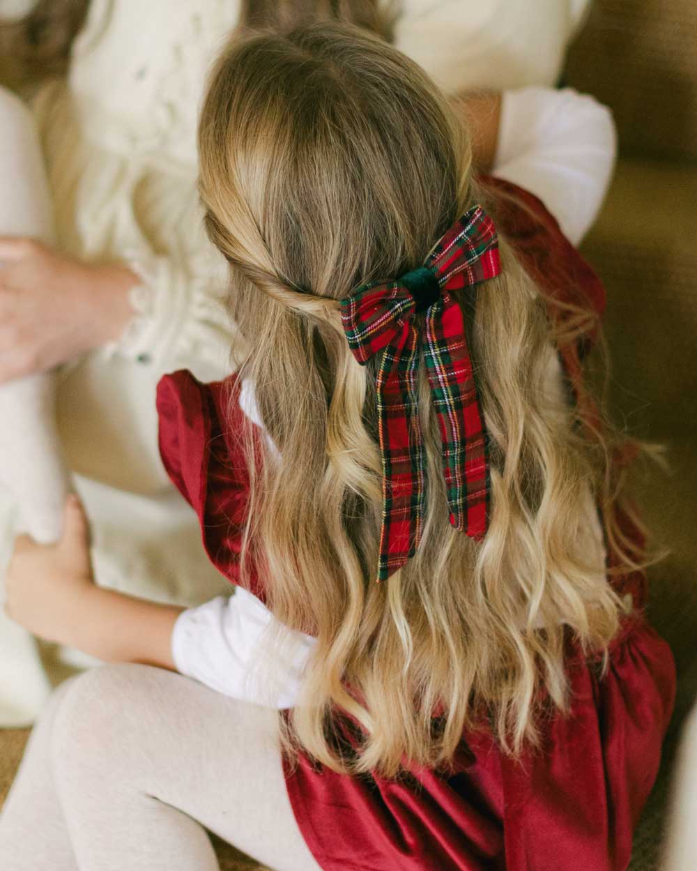 How to wear If you have thinner hair Clementine & Mint hair bows can be fixed with the crocodile closure to hold a half up hair style simply. If your hair is on the thicker side you can simply fix the hair bow over a pre pinned hair style, Model wears hair bow over a pre pinned half up hair style. See our Instagram and Tik Tok for more hair styling inspiration.