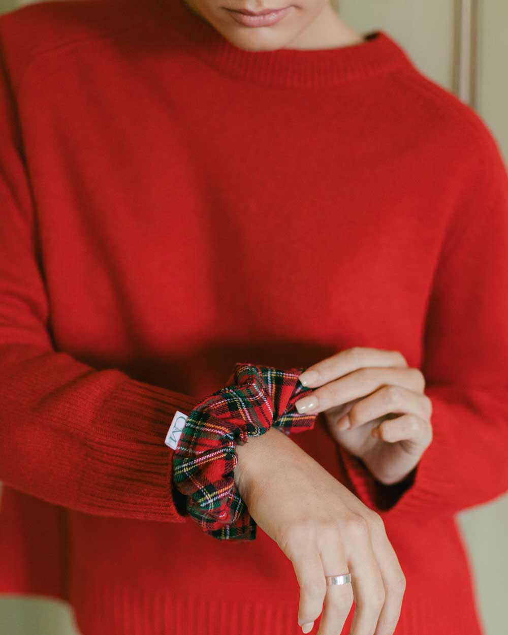 THE RED TARTAN SCRUNCHIE